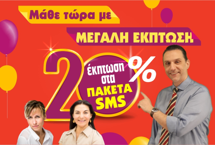 Κάνε κλικ ΕΔΩ για να μάθεις πως θα αγοράσεις πακέτο SMS με ΕΚΠΤΩΣΗ 20%!